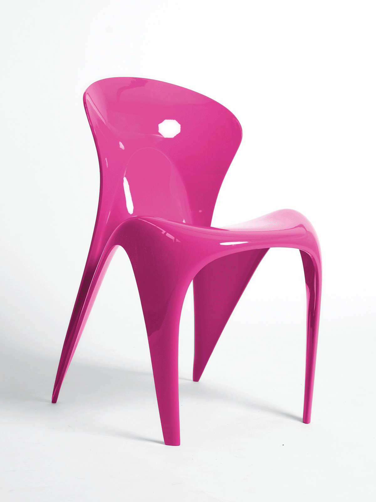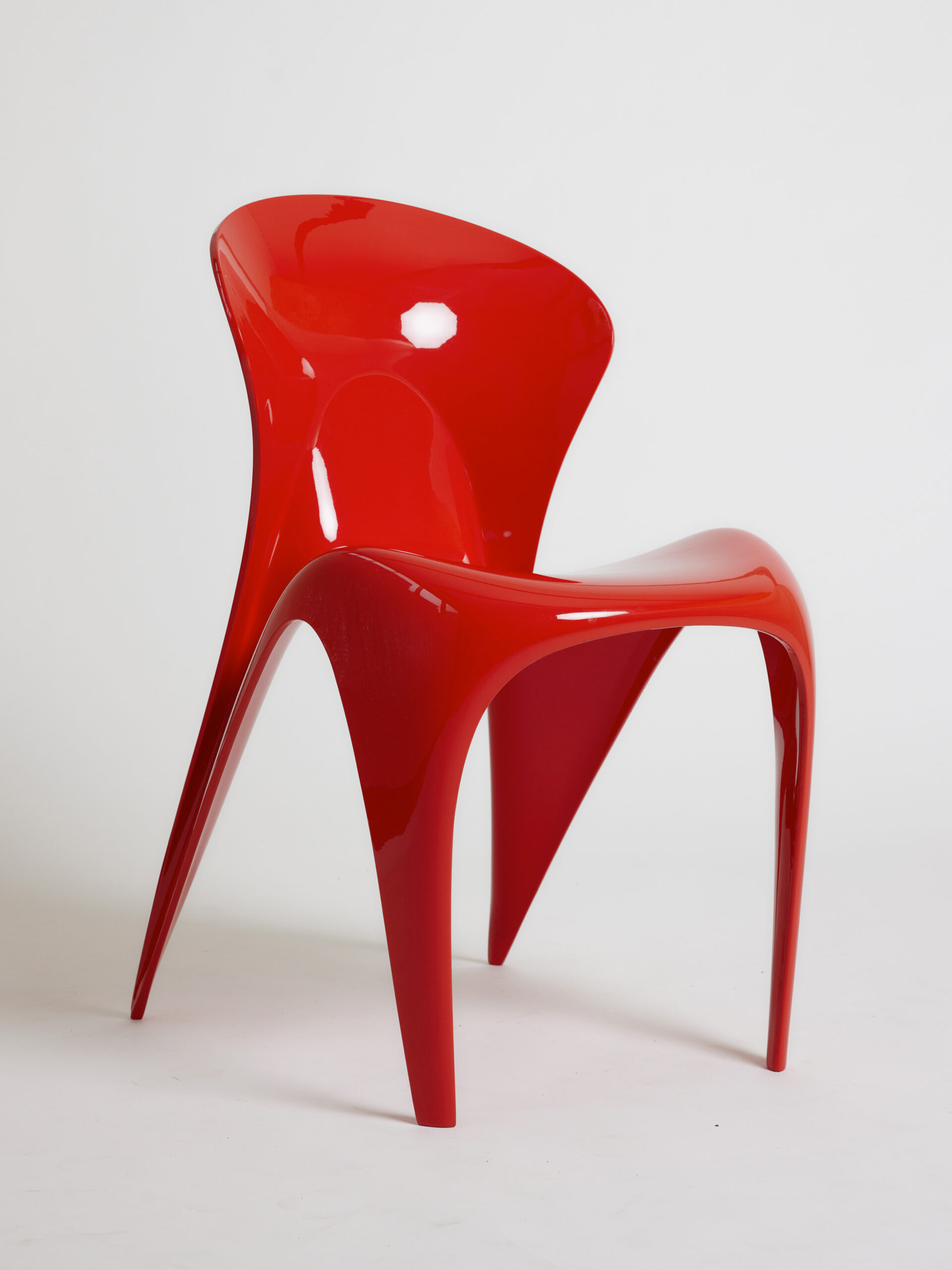 This captivating chair, molded from bio-sourced resin, evokes feminine and voluptuous curves.